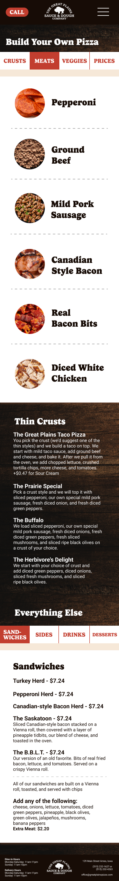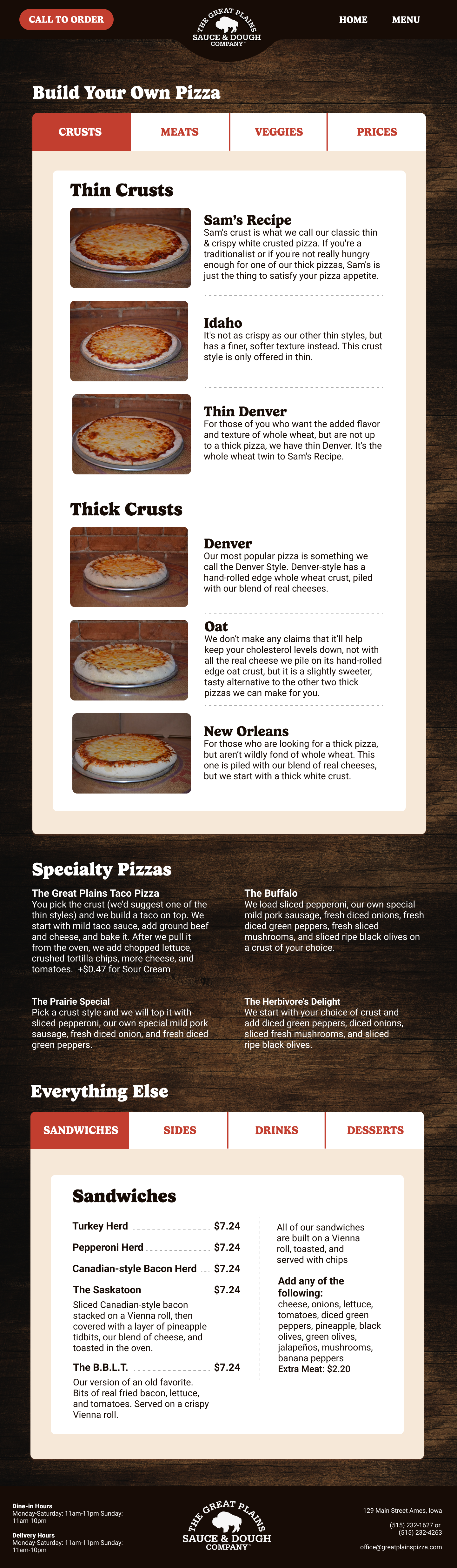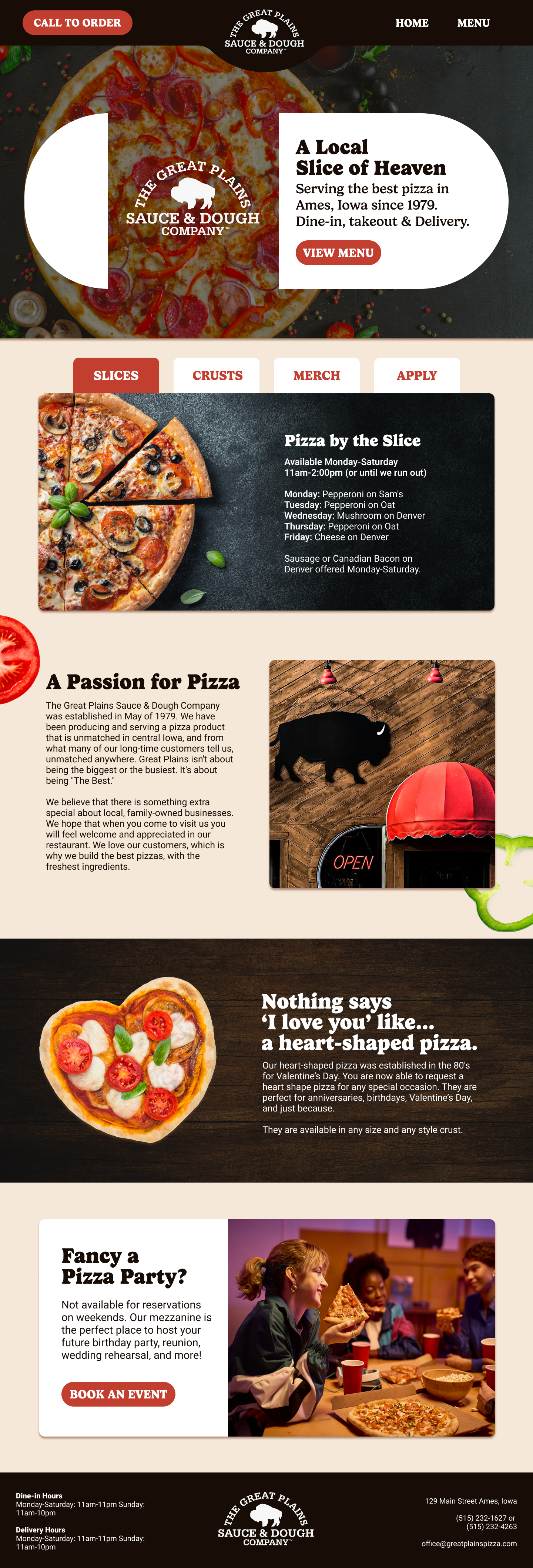 Website for the pizza place